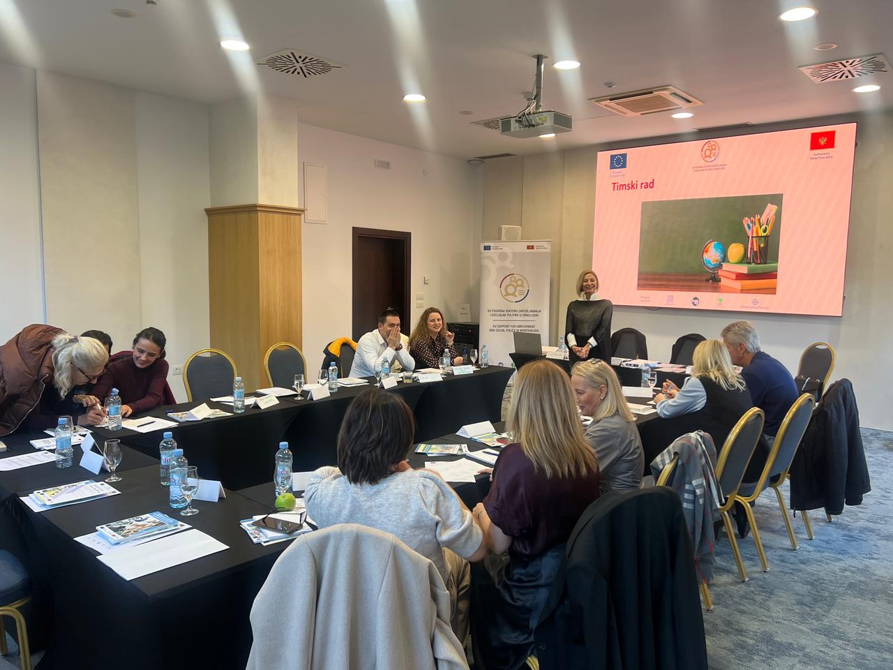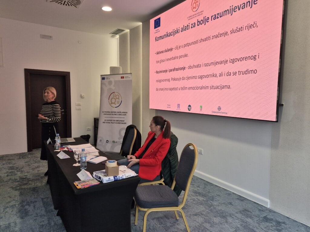 Cilj treninga bio je jačanje kapaciteta stručnih radnika centara za socijalni rad (CZSR) i Zavoda za zapošljavanje Crne Gore (ZZZCG) iz južnog regiona, unapređenje njihove međusobne saradnje, kao i primjena savremenih, evropski utemeljenih pristupa socijalnoj aktivaciji korisnika materijalnih davanja i drugih osoba u riziku od socijalne isključenosti.