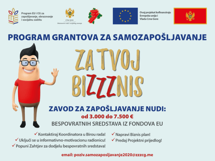Radionice su namijenjene nezaposlenima koji žele da apliciraju za Program grantova za samozapošljavanje za dodjelu bespovratnih sredstava iz fondova Evropske unije, od tri do 7.5 hiljada eura.